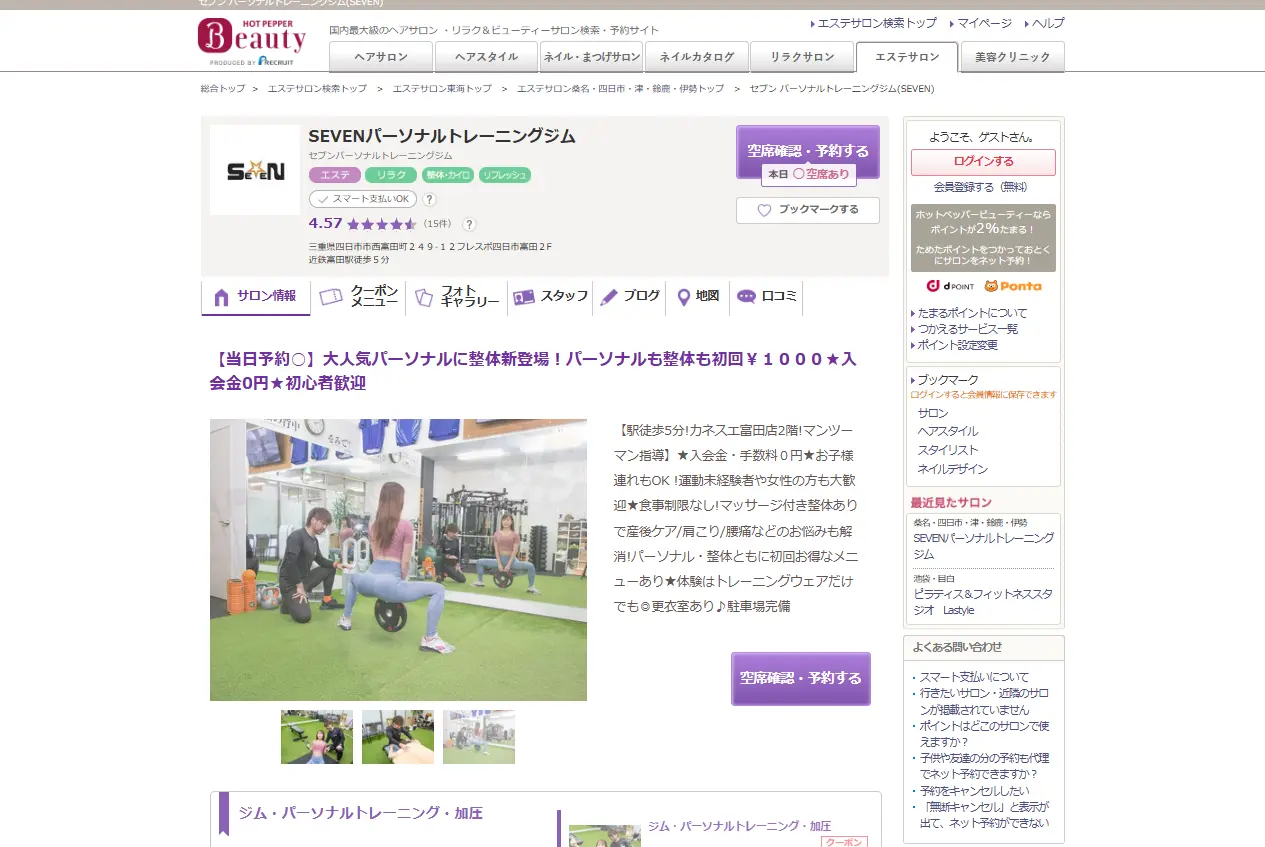 パーソナルジムの店舗ごとの会員数にもよりますが、予約が全く取れないことはありません。