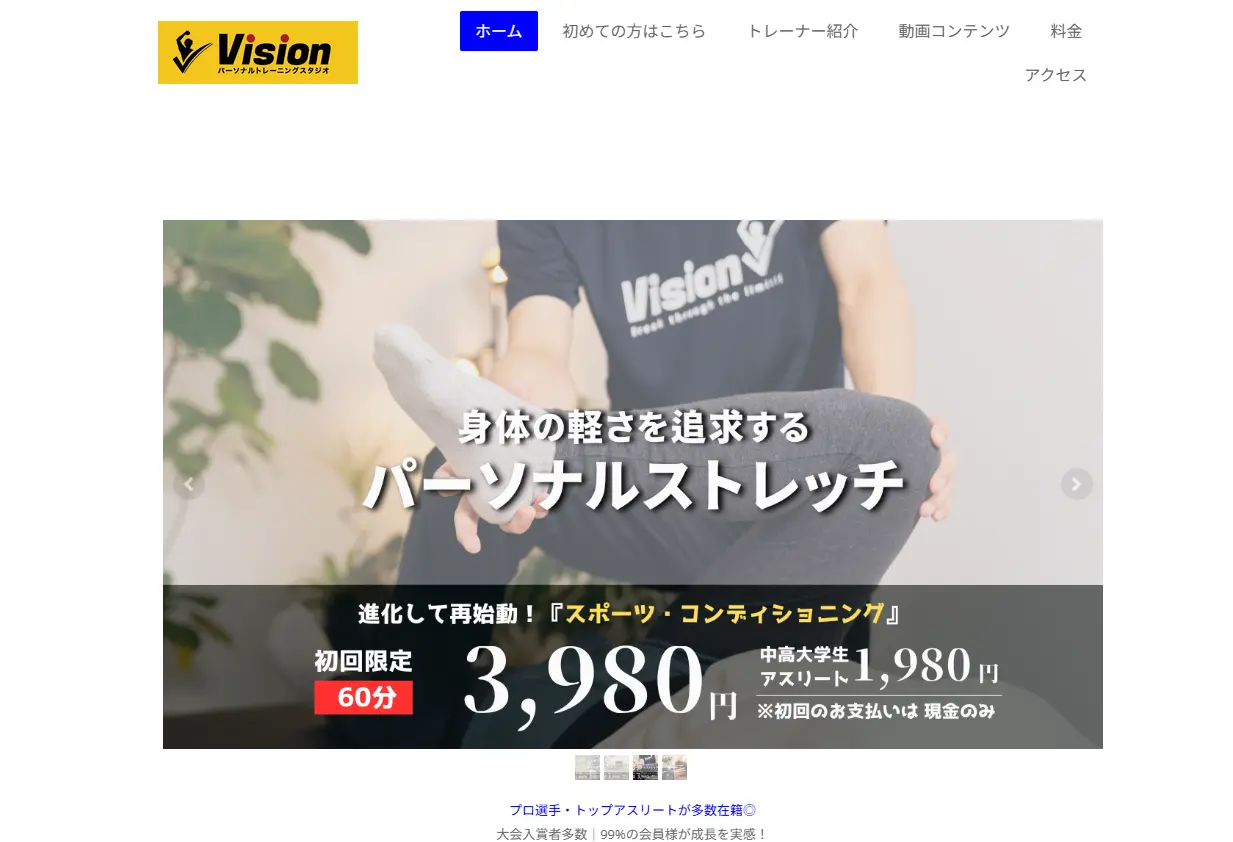 | 人気プラン | モニターコース16回(60分/2ヵ月):74,800円 スタンダードコース16回(60分/2ヵ月):85,800円 シュウイチコース8回(60分):46,200円 シュウイチコース12回(60分):68,200円 シュウイチコース16回(60分):89,650円 |