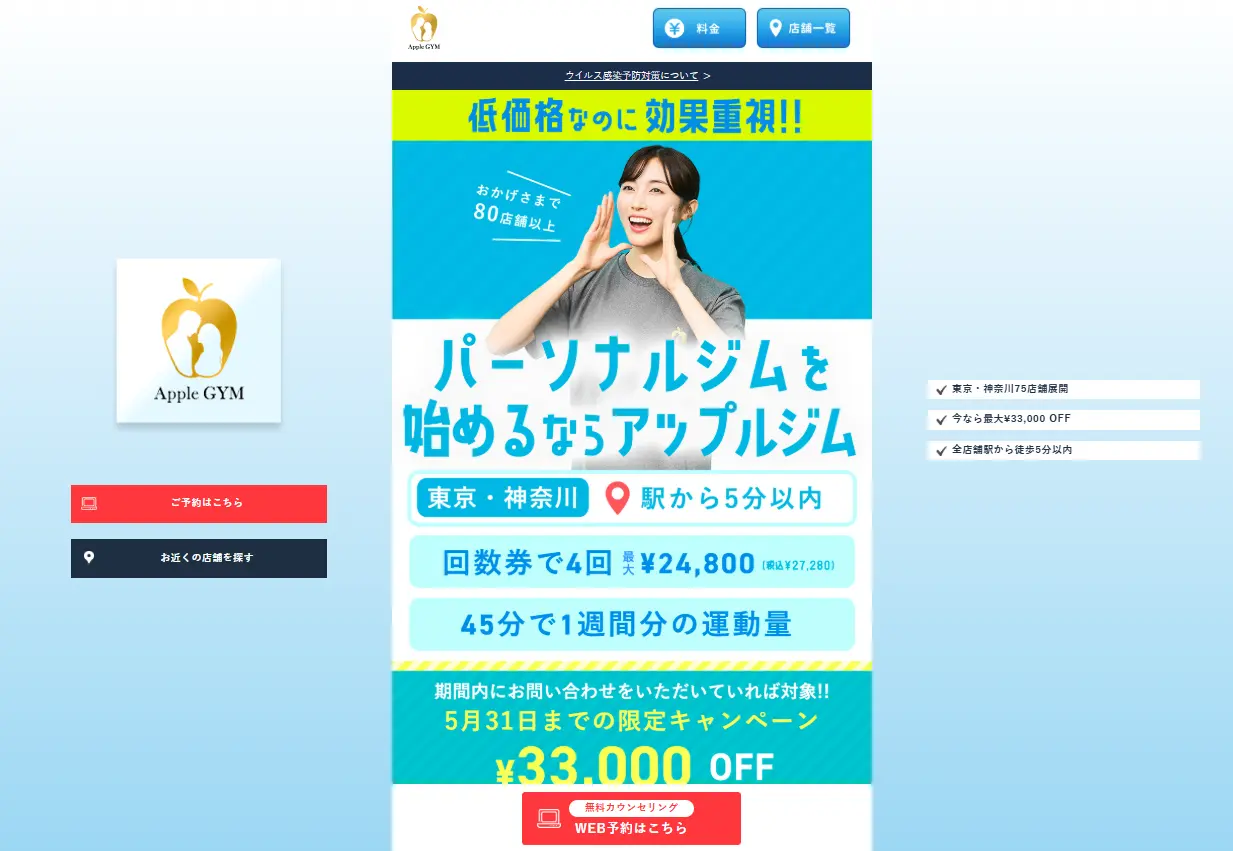 しかも今なら、通常5,500円の体験トレーニングが無料のキャンペーン中!