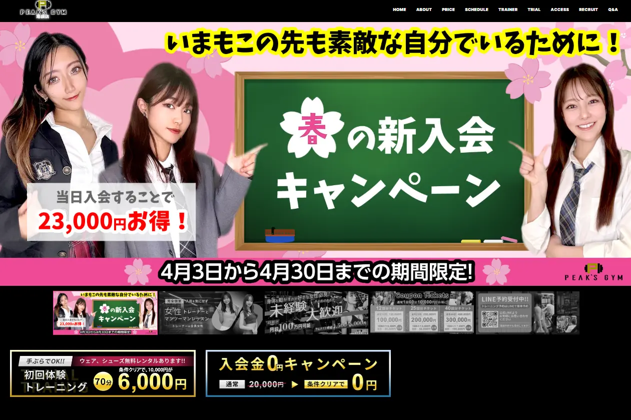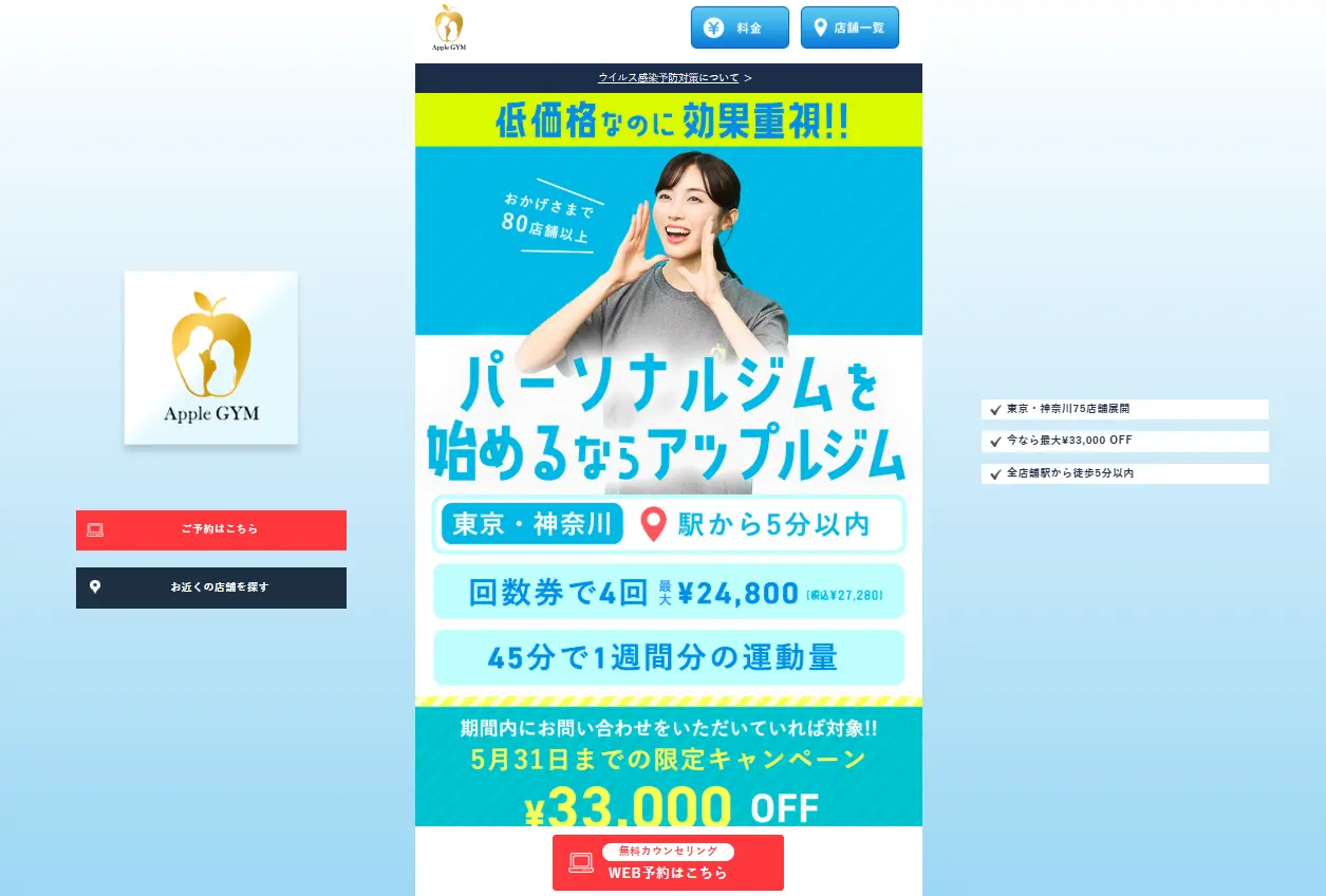 体験入会金5円・パーソナルトレーニング体験30分無料