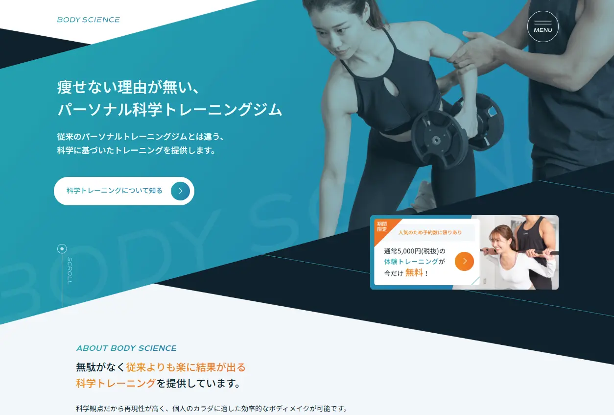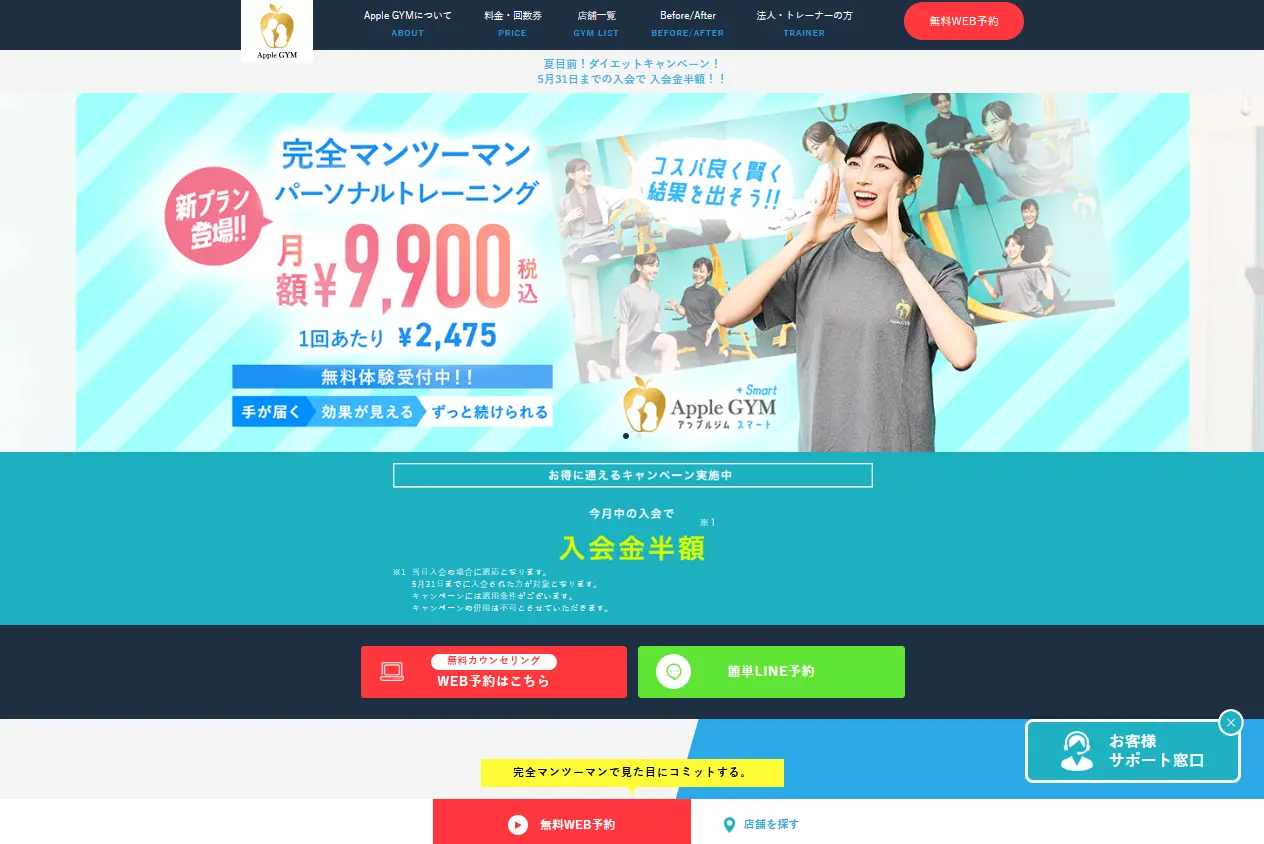 | 体験 | 入会金5円・パーソナルトレーニング体験30分無料 |