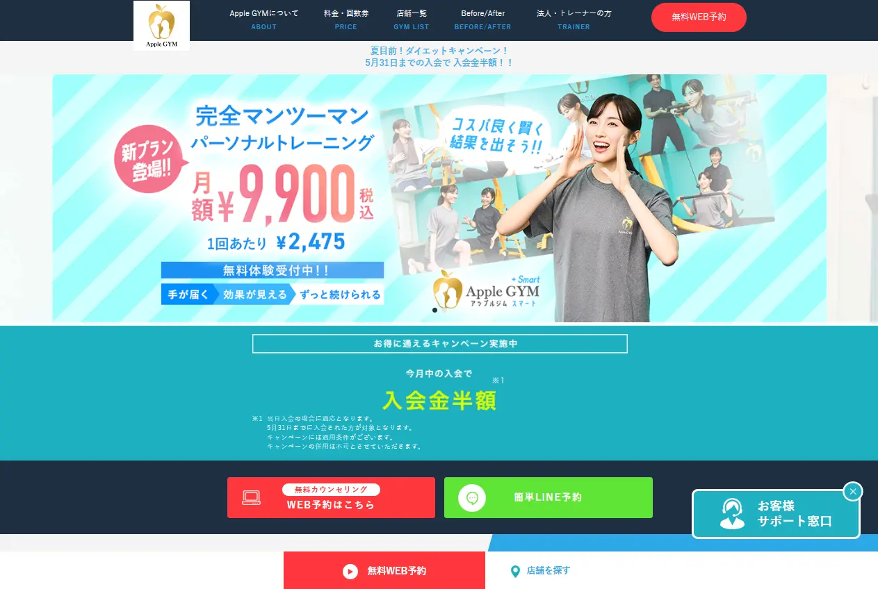| 体験 | 無料カウンセリング・体験トレーニング |
