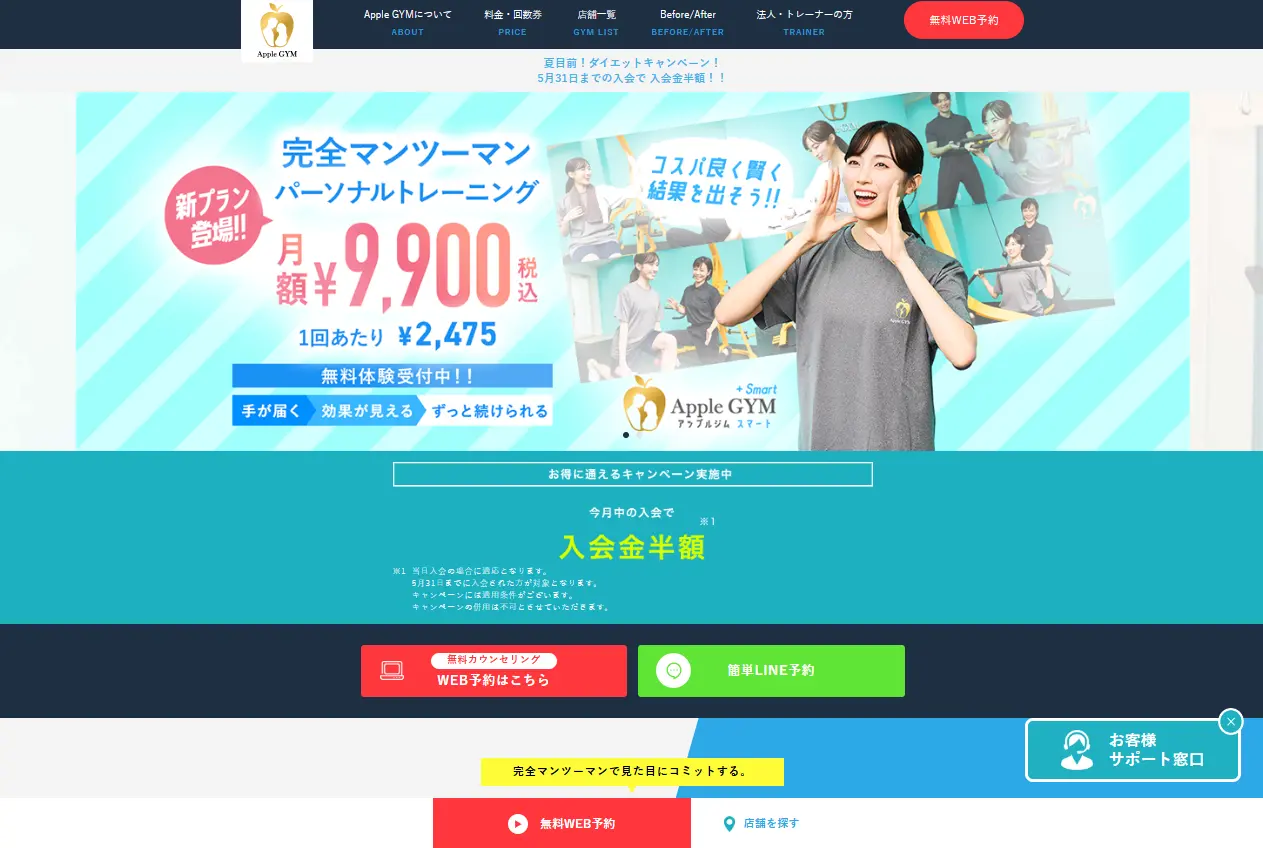 | 体験 | 無料カウンセリング・体験トレーニング |